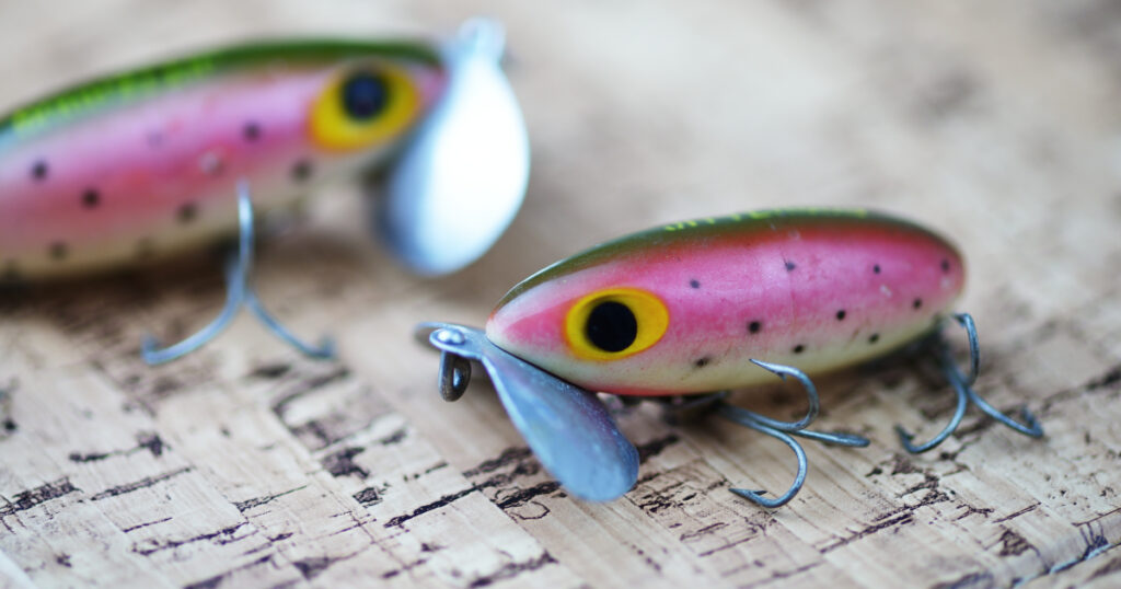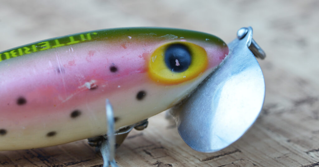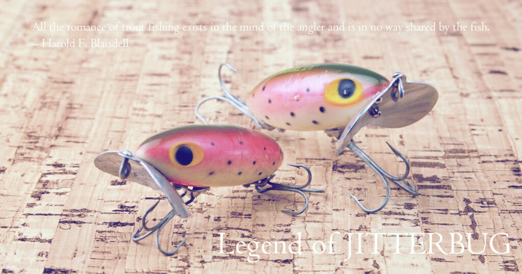 このトラウトカラーに関してはピーナッツサイズの方がころんとしていて可愛いと思う(100%主観)。アーボガストはジッターバグのことを広告か何かでShe(女性)と呼んでいましたが、このカラーはまさに女性的な感じで色気も纏っている感じです。