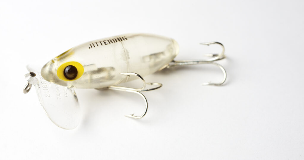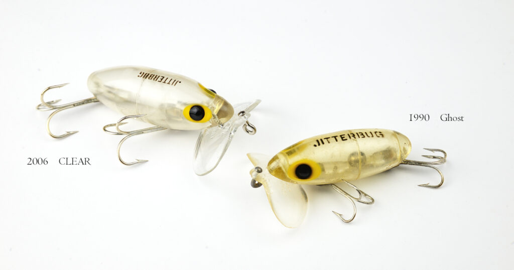 The original Jitterbug action is now being created by an invisible clear lip. Produces more strikes for daytime fishing.”