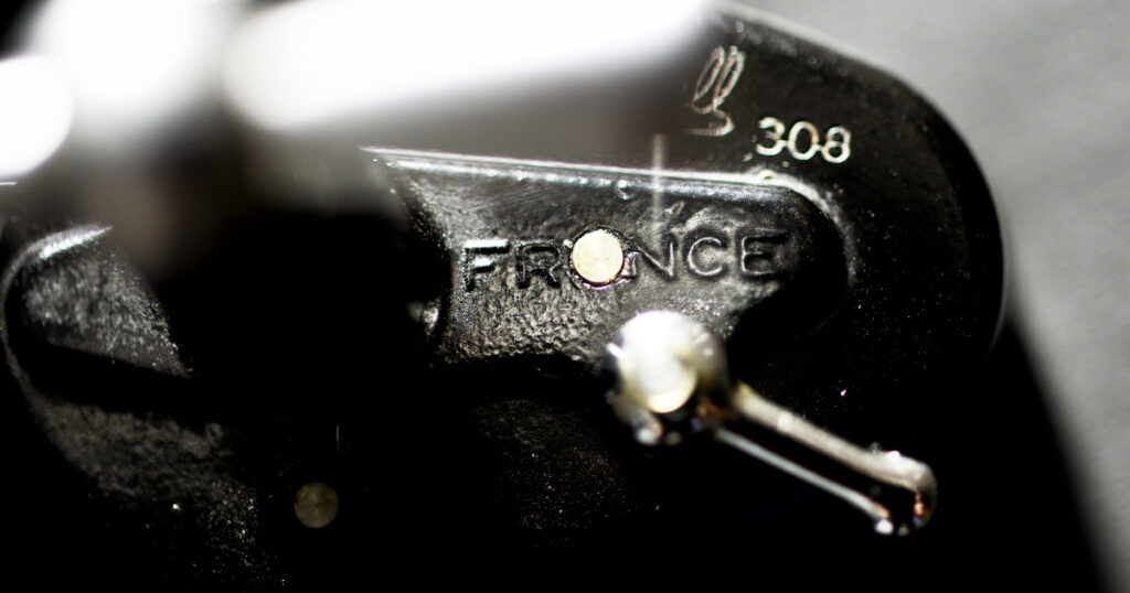 そして写真のようにボディーにFR●NCE刻印がある308は1960年前半頃の極初期のモデルらしい。ただFRANCEと刻印があるのではなくカシメ部分の〇に重ねているのがエスプリ。さすがはおフランスデザイン。