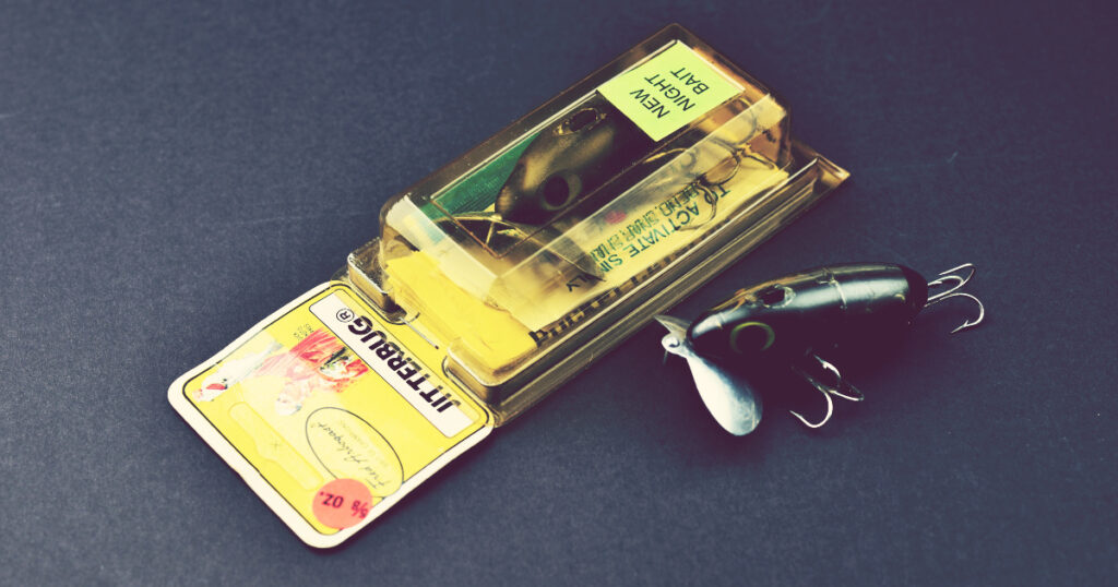 1989年に発売されたナイトベイト。ケミカルライトなどの小さな発光体を入れることができるように背中に穴が開いている。カタログでは”Hi-Vi” finish (High Visibility 高視認性)と紹介され発光体付属で販売。1992年頃から穴あけ加工がされていないルミナス仕様のものに引き継がれる。